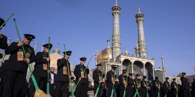 به گزارش خبرگزاری تسنیم از قم، جمعی از خادمان بارگاه منور امام رضا(ع) با حضور در حرم مطهر بانوی کرامت صبح امروز پس از خطبهخوانی، در آیین سنتی جاروکشی گرداگرد حوض صحن امام رضا(ع) مشارکت کردند.