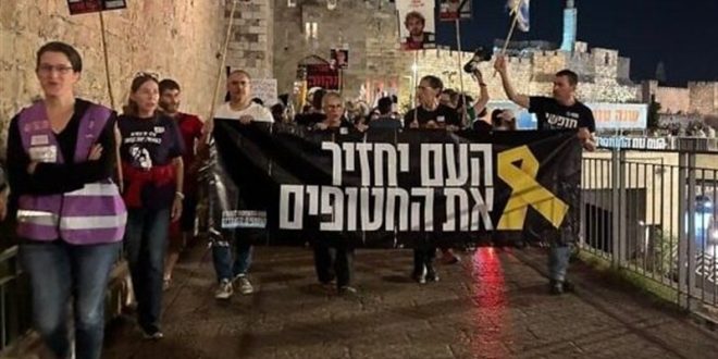 گروه بین الملل خبرگزاری تسنیم، در ادامه تظاهرات علیه بنیامین نتانیاهو، نخست وزیر رژیم صهیونیستی صدها معترض از بخش قدمی قدس اشغالی تظاهرات کردند و خواستار توافق بابت آزادی اسرا و پایان جنگ شدند.
