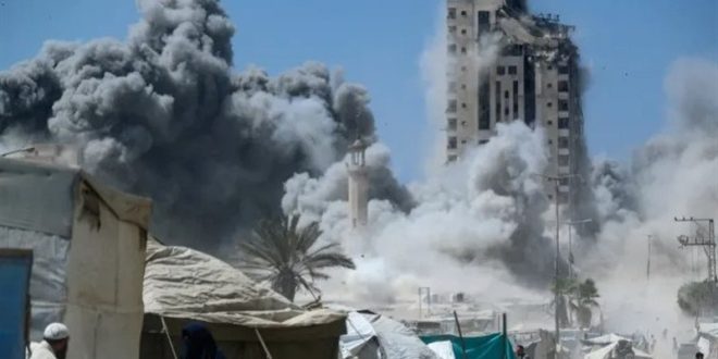 تشدید تجاوزات وحشیانه اشغالگران به شهر غزه و انفجار برجهای مسکونی