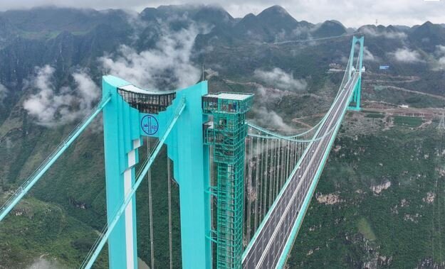 پل معلق «درۀ هواجیانگ بزرگ» در استان کوهستانی گویژو با ارتفاع ۶۲۵ متر از سطح رودخانه (۵ برابر برج ایفل!) افتتاح شد و رکورد جهانی را شکست. این پل غولپیکر که ۲۸۹۰ متر طول دارد، زمان عبور از درهای عمیق را از دو ساعت به تنها دو دقیقه کاهش داده است./فارس