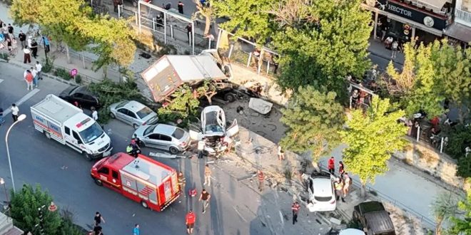 در نوشهیر، یک کامیون با ترمز خراب، ۱۰ خودرو را درهم کوبید و به کانال سقوط کرد. ۶ نفر زخمی شدند و لحظهبهلحظهی این حادثه در دوربینهای امنیتی ثبت شد. منبع: Haber