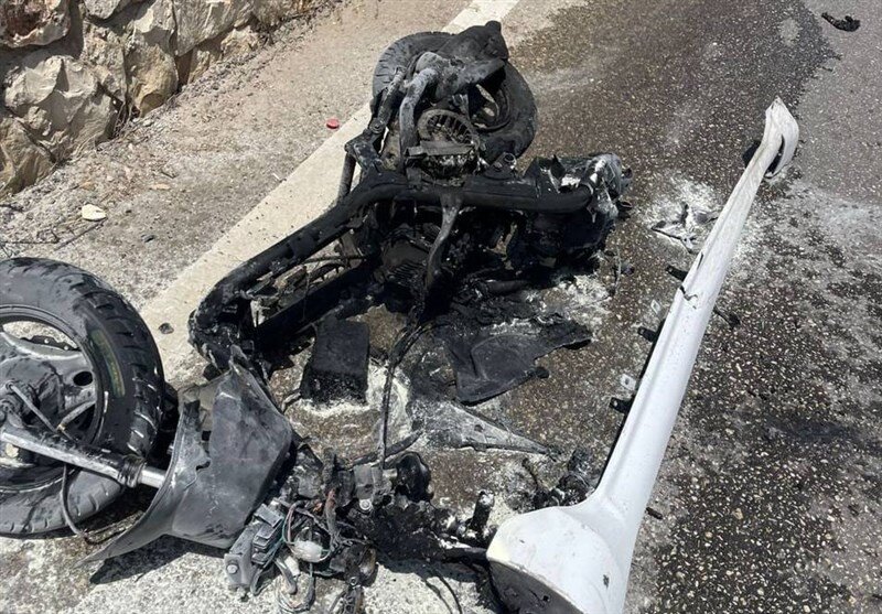 یک پهپاد اسرائیلی، جوانی سوار بر موتور سیکلت را در شهرک البازوریه واقع در جنوب لبنان مورد هدف قرار داد. منبع: خبرگزاری دانشجو
