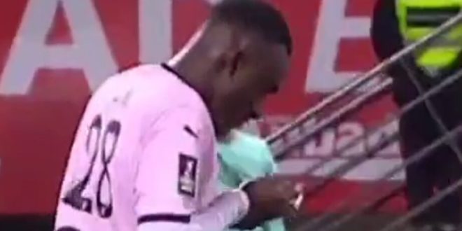 بازیکن «آمیان» میخواست توپ را دور کند اما سایه توپ را زد و زانویش به فک او اصابت کرد./خبرفوری