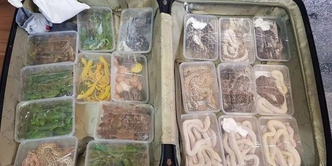 فرمانده یگان حفاظت محیط زیست استان تهران از کشف و ضبط محمولهای شامل صدها گونه جانوری قاچاق در فرودگاه امام خمینی خبر داد. این محموله که شامل رتیل، عقرب، هزارپا و دیگر گونههای جانوری بود، از یک مسافر ورودی از کوالالامپور کشف شد. مأموران گمرک و نیروی انتظامی پس از بازرسی چمدانها، این گونهها را شناسایی کردند./صداوسیما