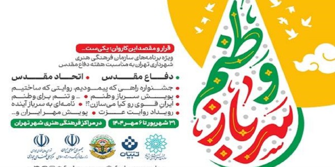 باشگاه خبرنگاران جوان– به گزارش پایگاه خبری تحلیلی فرهنگ و هنر، سازمان فرهنگی هنری شهرداری تهران ویژهبرنامههای هفته دفاع مقدس با محوریت «وحدت ملی» و مضامینی، چون «مسیر پیشرفت جمهوری اسلامی» و «عزت و استقلال ملی» را در سطح محلات، مناطق و گستره شهر تهران با هشتگ «سرباز وطنم» برگزار میکند.