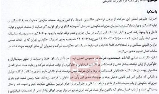 ایران خودرو در واکنش به رای تعزیرات در کدال به شرح نامه زیر شفاف سازی کرد: