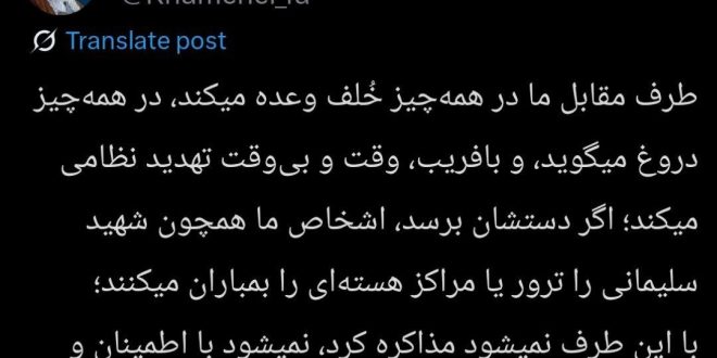 به گزارش خبرگزاری خبرآنلاین، حساب کاربری رهبر معظم انقلاب در شبکه ایکس/توییتر با انتشار مطلبی بعد از پایان جلسه شورای امنیت به نتیجه این جلسه واکنش نشان داد.