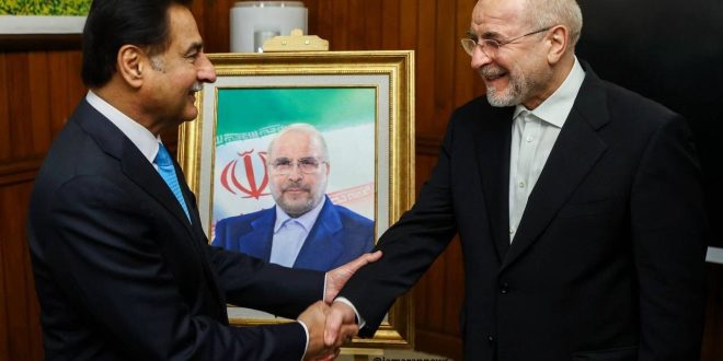 رییس مجلس ملی پاکستان تابلو تصویر قالیباف را به او هدیه داد + عکس