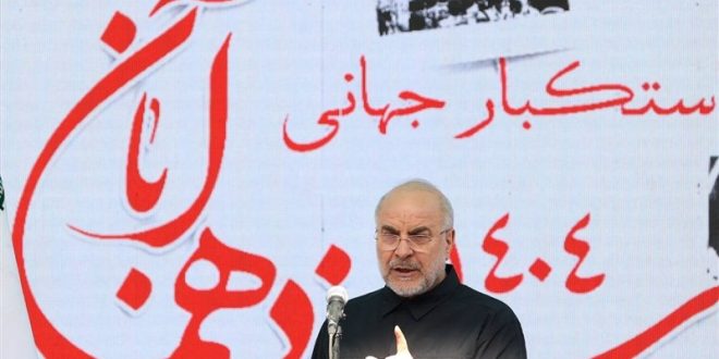 رئیس مجلس تأکید کرد:  دیروز همین جوانان ایرانی با مبارزه و ایستادگی، بند وابستگی و زالوصفتی را از این کشور بریدند و نشان دادند که ملت ایران اسیر فشارها و تحریم‌ها نمی‌شود. امروز نیز روز جهاد تبیین است؛ روزی که باید حقیقت استقلال و عزت ملت را برای جهانیان روشن کنیم.