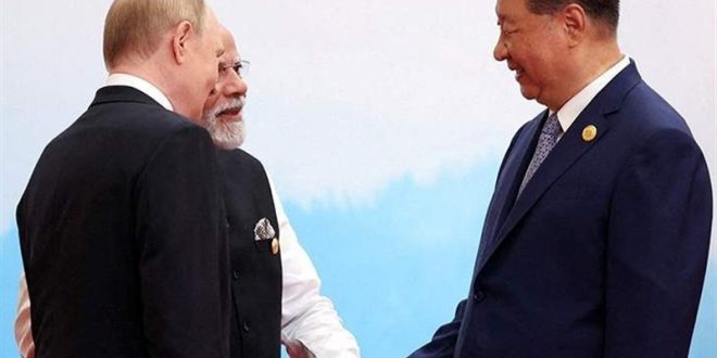 در نشست رهبران کشورهای عضو سازمان همکاری شانگهای، پوتین، مودی و شی جین پینگ عکس مشترکی گرفتند که در آن در حال دست دادن با یکدیگر هستند.