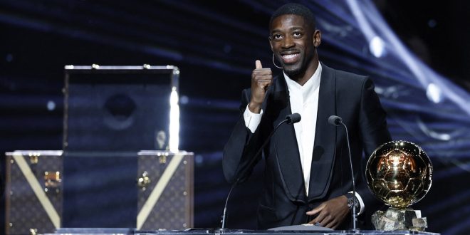 توپ طلا (بهترین بازیکن سال): عثمان دمبله، مهاجم پاریسنژرمن، با حضور رونالدینیو جایزه را دریافت کرد. پس از اعلام نام دمبله، رقیب اصلی او، لامین یامال، اشک ریخت و خود دمبله نیز از شوق گریست.