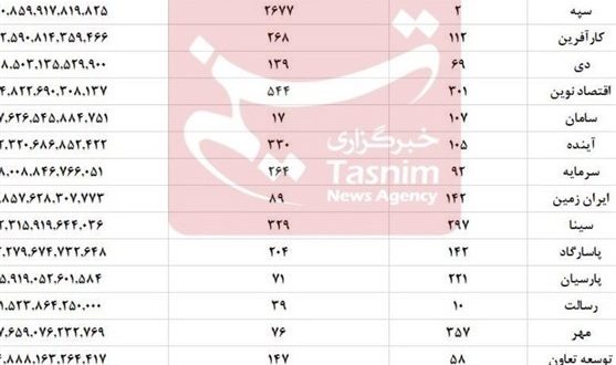 میان شبکه بانکی، و با درنظرگرفتن همان قیمتهای روز اعلامی از سوی بانکها که گاهی بسیار کمتر از ارزش واقعی آن املاک بوده است که در بالا توضیح داده شد، بانک شهر با حدود 190 همت در صدر فهرست ارزش داراییهای غیرمنقول قرار گرفته است، پس از آن، بانک ملت با 154 همت و بانک تجارت با 147 همت در رتبههای دوم و سوم ایستادهاند، این سه بانک رویهم بیش از 490 همت از املاک بانکی کشور را در اختیار دارند.