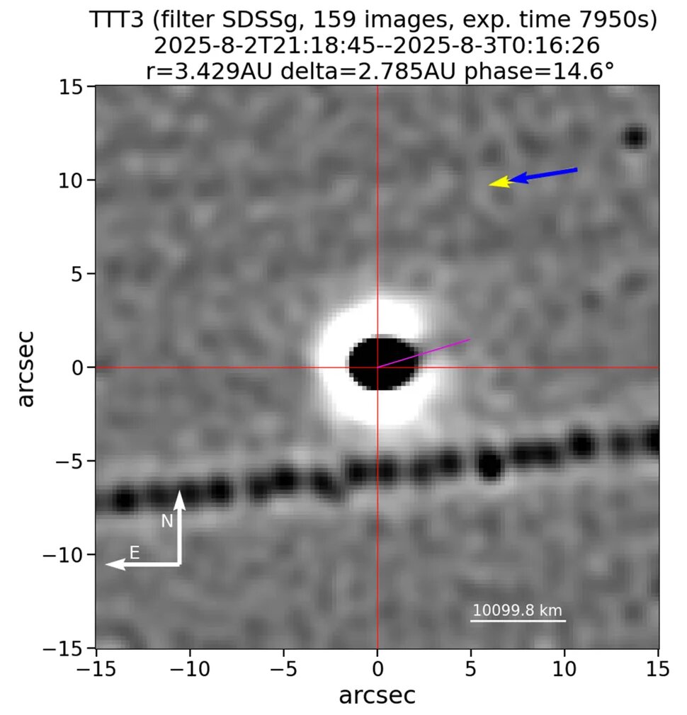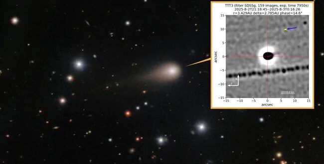 به گزارش خبرآنلاین، «3I/ATLAS» در ۲۰۲۴ توسط تلسکوپ ATLAS در هاوایی کشف شد. تصاویر جدیدتر از این جرم میانستارهای فورانی به طول حدود ۱۰ هزار کیلومتر از سطح آن را نشان میدهد.