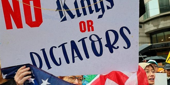 ترامپ در مصاحبهای با فاکس نیوز که روز جمعه پخش شد، قبل از عزیمت به یک مراسم جمعآوری کمک مالی 1 میلیون دلاری برای جنبش «ماگا» در مار-آ-لاگو، گفت: آنها (تظاهرات کنندگان) میگویند که از من به عنوان پادشاه یاد میکنند. من پادشاه نیستم.