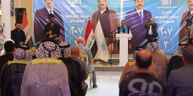 به گزارش سایت عربی خبرگزاری تسنیم، خبرنگار ما در نشست انتخاباتی لیست اعمار و تنمیه(بازسازی و توسعه) در بغداد مشارکت کرد تا از برنامه های این ائتلاف اطلاع یابد و این درحالی است که براساس نظر کارشناسان سیاسی، ائتلاف بازسازی و توسعه به ریاست محمد الشیاع السودانی شانس بالایی برای کسب آرا در ششمین انتخابات پارلمانی عراق دارد و ادامه روند فعلی دولت با تمرکز بر بهبود زیرساخت ها اولویت این ائتلاف است.