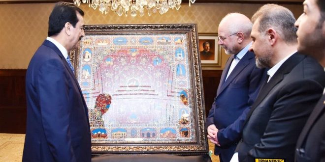 هدیه خاص و نفیس قالیباف به رئیس مجلس سنای پاکستان + عکس