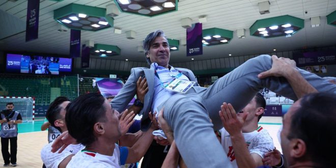 اعضای تیم ملی فوتسال ایران پس از پیروزی قاطع ۵ بر صفر مقابل مراکش در دیدار نهایی بازی‌های همبستگی کشورهای اسلامی در ریاض و کسب مدال طلا، غرق در شادی شدند.