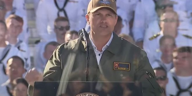 هگست در ادامه با اشاره به ترامپ به عنوان فرمانده کل ارتش آمریکا، گفت: امروز، ما یک فرمانده کل داریم که هر روز برای شما و برای کشورمان میجنگد و تضمین میکند که در دریاهای آزاد، هر آنچه برای بازدارندگی دشمنان و در صورت نیاز، پیروزی قاطع نیاز دارید، در اختیار داشته باشید.