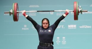 دختر وزنه‌بردار ایران در پایان حرکت یک ضرب دسته ۸۶ کیلوگرم بازی‌های کشورهای اسلامی به …