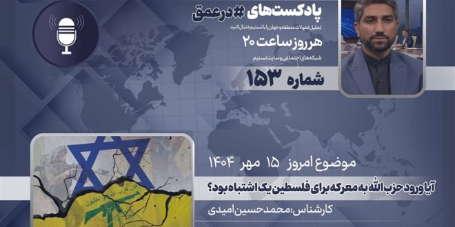 گروه بین‌الملل خبرگزاری تسنیم ـ یکصدوپنجاه و سومین شماره از پادکست «در عمق» که به بررسی مهم‌ترین روندها، تحولات و همچنین شخصیت‌ها در غرب آسیا می‌پردازد، روز سه شنبه 15 مهر 1404 ضبط و منتشر شد. در دومین سالگرد طوفان الاقصی، «محمدحسین امیدی»، کارشناس مسائل لبنان از زمینه‌های ورود حزب‌الله به جنگ 7 اکتبر 2023 می‌گوید.
