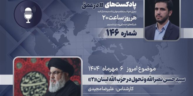 گروه بینالملل خبرگزاری تسنیم ـ یکصدوچهلوششمین شماره از پادکست «در عمق» که به بررسی مهمترین روندها، تحولات و همچنین شخصیتها در غرب آسیا میپردازد، روز یکشنبه 6 مهر 1404 ضبط و منتشر شد. در این شماره «علیرضا مجیدی»، کارشناس مسائل غرب آسیا به سوالهای در عمق درباره سید حسن نصرالله پاسخ میدهد.