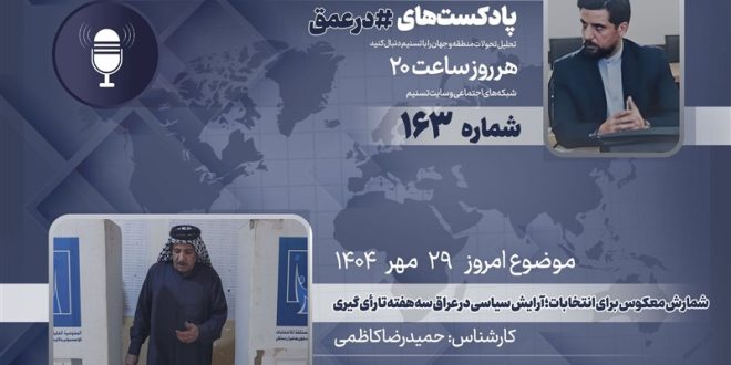 گروه بینالملل خبرگزاری تسنیم ـ یکصدوشصتوسومین شماره از پادکست «در عمق» که به بررسی مهمترین روندها، تحولات و همچنین شخصیتها در غرب آسیا میپردازد، روز سهشنبه 29 مهر 1404 ضبط و منتشر شد، در این اپیزود «حمیدرضا کاظمی»، کارشناس مسائل خلیج فارس و خاورمیانه، تحولات انتخابات عراق را بررسی کرده است.