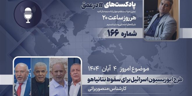 گروه بین‌الملل خبرگزاری تسنیم ـ یکصدوشصت‌وششمین شماره از پادکست «در عمق» که به بررسی مهم‌ترین روندها، تحولات و همچنین شخصیت‌ها در غرب آسیا می‌پردازد، روز یکشنبه 4 آبان 1404 ضبط و منتشر شد، در این اپیزود «منصور براتی»، کارشناس مسائل رژیم صهیونیستی، ابتکار اپوزیسیون برای کنار زدن بنیامین نتانیاهو را بررسی خواهد کرد.