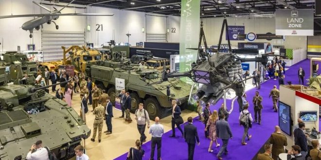 نمایشگاه DSEI هر دو سال یکبار در لندن برگزار میشود و یکی از بزرگترین گردهماییهای جهانی صنایع تسلیحاتی به شمار میآید.