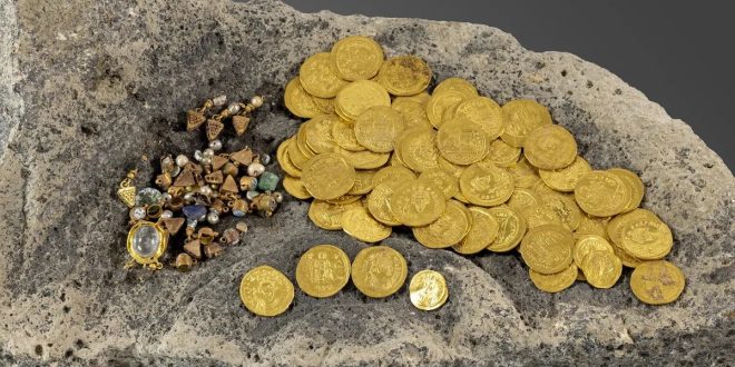 یک فرد که با دستگاه فلزیاب در حال جست‌وجو بود، به طور غیرمنتظره‌ای به یک گنجینه باستانی دست یافت؛ مجموعه‌ای ارزشمند از سکه‌های طلای بیزانسی و جواهراتی که قدمت آن‌ها به حدود ۱۴۰۰ سال پیش می‌رسد.