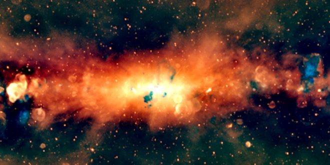 سبز: میدانهای مغناطیسی و گازهای داغ کهکشان را نمایش میدهد.