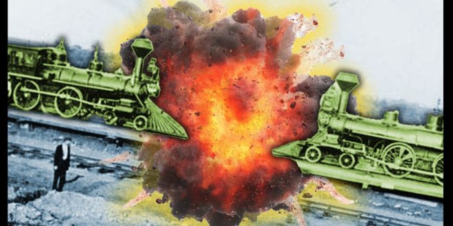 او در سال ۱۸۹۵ در اوهایو، دو قطار رنگشده با نامهای نمادین «تجارت آزاد» و «حمایت» را به هم کوبید و بیش از ۲۵ هزار نفر را جذب کرد. برخورد قطارها، انفجار بخار و پرتاب ترکش آهنی، جمعیت را هم ترساند و هم هیجانزده کرد. این رویداد، آغازی شد برای نوعی از نمایش که بعدها در سراسر آمریکا گسترش یافت.
