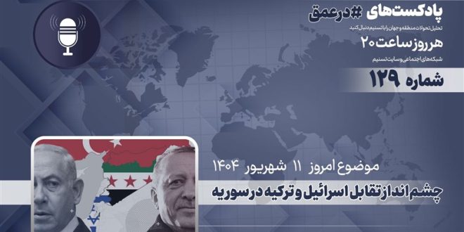 گروه بینالملل خبرگزاری تسنیم ـ یکصد و بیست و نهمین شماره از پادکست «در عمق» که به بررسی مهمترین روندها، تحولات و همچنین شخصیتها در غرب آسیا میپردازد، روز سهشنبه 11 شهریور 1404 ضبط و منتشر شد. در این شماره «حمیدرضا کاظمی»، کارشناس مسائل غرب آسیا سوالاتی را درباره مسیر تشدید تنش میان اسرائیل و ترکیه در سوریه جدید پاسخ داده است.