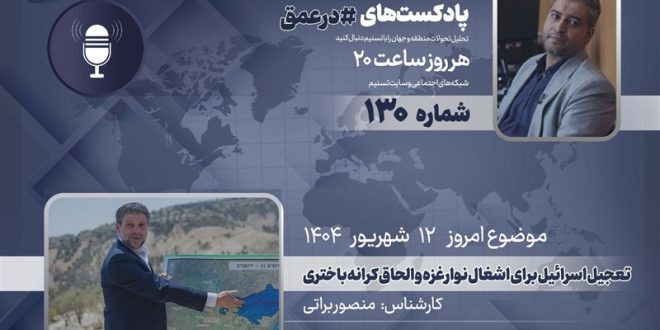 گروه بینالملل خبرگزاری تسنیم ـ یکصد و سی امین شماره از پادکست «در عمق» که به بررسی مهمترین روندها، تحولات و همچنین شخصیتها در غرب آسیا میپردازد، روز چهارشنبه 12 شهریور 1404 ضبط و منتشر شد. در این شماره «منصور براتی»، کارشناس مسائل رژیم اسرائیل علت عجله رژیم صهیونیستی برای تسلط بر کرانه باختری و نوار غزه در یک سال باقی مانده تا انتخابات آینده کنست رژیم صهیونیستی را بررسی می کند.