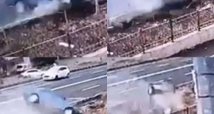 دوربین‌های مداربسته لحظه‌ی سقوط یک خودرو به داخل کانال زهکشی را ثبت کردند؛ حادثه‌ای هولناک …