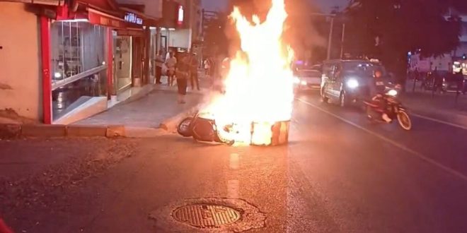 راننده موتورسیکلت با مشاهده دود از موتور یک خودروی عبوری، بلافاصله وارد عمل شد. او خودرو را متوقف کرد و با اقدام سریع، موفق شد آتشسوزی را پیش از گسترش مهار کند. / TRT