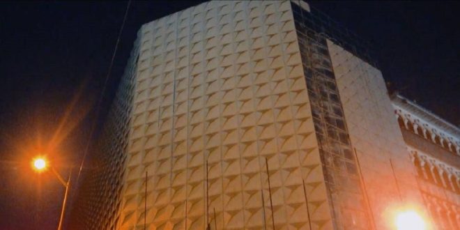 شهردار منطقه ۱۱ از جمعآوری این داربستها خبر داد و گفت: بالاخره پس از پیگیریهای گسترده شهرداری منطقه ۱۱ و پس از گذشت حدود ۳ سال، این داربستها به جهت تامین امنیت عمومی جمعآوری شد تا ضمن رفع خطر و برقراری ایمنی شهروندان، چهره این ساختمان، زیبایی بصری بیشتری پیدا کند. باید اشاره کنم که این اقدام حسب تبصره ۱۴ ماده ۵۵ قانون تامین امنیت عمومی که در آن قانونگذار این وظیفه را برعهده شهرداری گذاشته است، انجام شد. جمعآوری این داربستها طی ۲ شب و توسط ۲۱۰ نفر در ۲ شیفت کاری انجام شد و ۷ دستگاه کامیون، ۲ جرثقیل، ۱ باب کت و یک دستگاه بیل مکانیکی پیکوردار در اجرای آن حضور داشتند. در نهایت، داربستها توسط ۱۲ خودروی پیکاپ و نیسان ۱۳۷ شهرداری منتقل شدند.