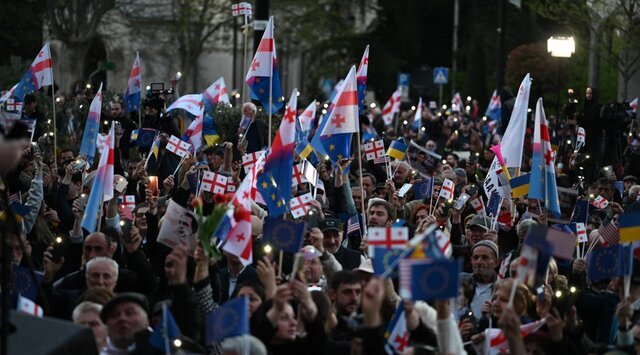 به گزارش خبرآنلاین، معترضان غربگرا در تفلیس شامگاه شنبه با در دست داشتن پرچم اتحادیه اروپا به سمت کاخ ریاستجمهوری گرجستان تظاهرات کرده و با عبور از موانع آهنی وارد محوطه اقامتگاه رئیسجمهور این کشور شدند.
