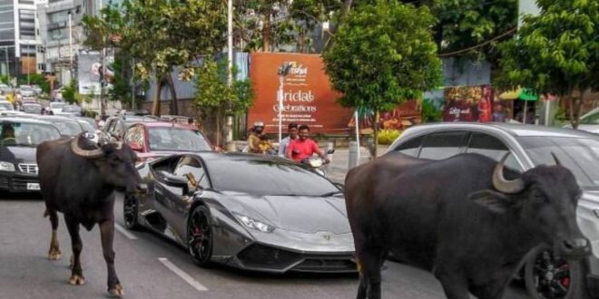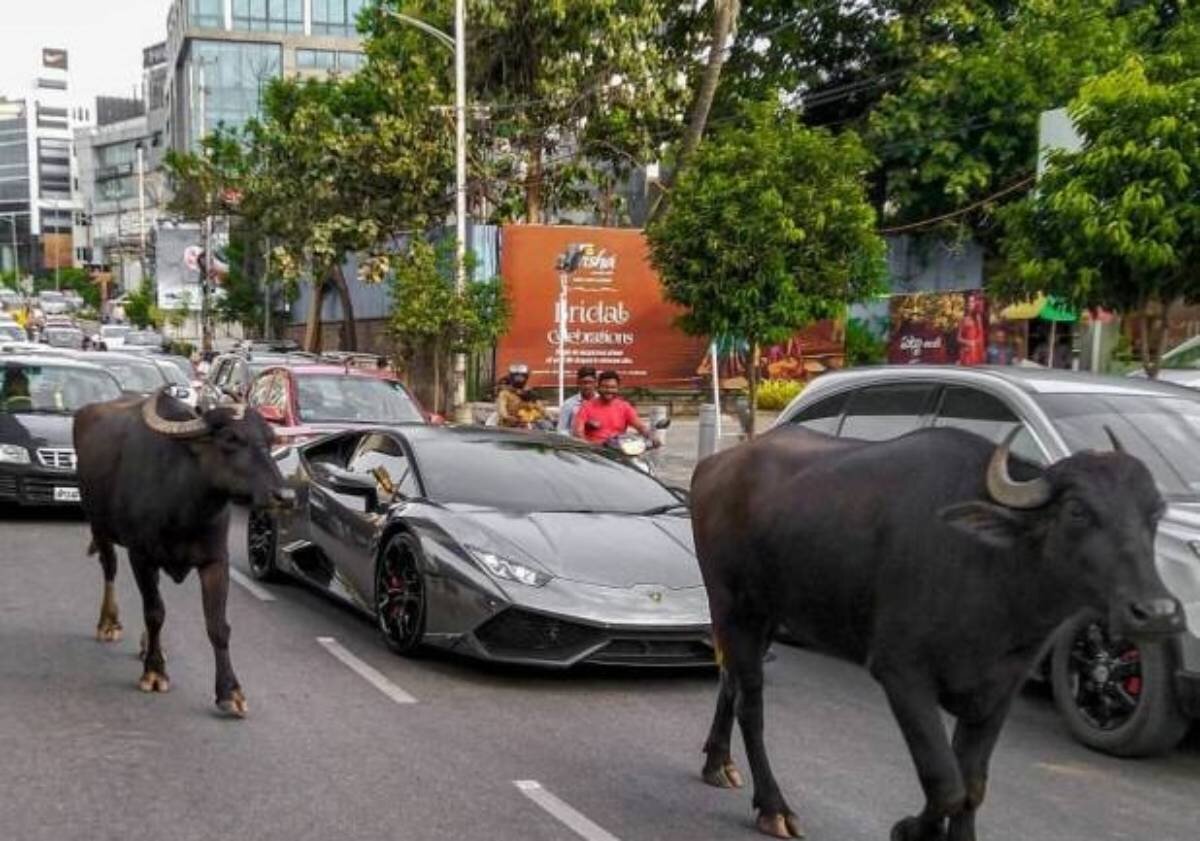 گاو خشمگین در هند به یک لامبورگینی حمله کرد و آن را زیر پاهای خود له کرد. / Diha