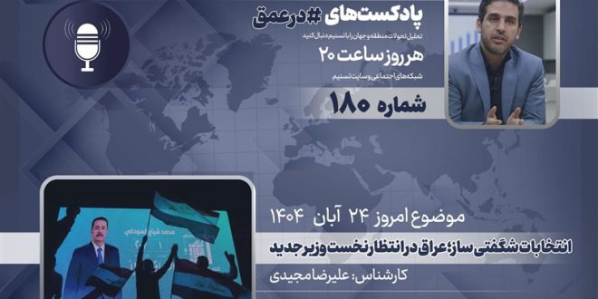 گروه بینالملل خبرگزاری تسنیم ـ یکصدوهشتادمین شماره از پادکست «در عمق» که به بررسی مهمترین روندها، تحولات و همچنین شخصیتها در غرب آسیا میپردازد، روز شنبه 24 آبان 1404 ضبط و منتشر شد. «علیرضا مجیدی»، کارشناس مسائل غرب آسیا، در این اپیزود مهمترین مسائل و پیچیدگیهای تحلیل نتایج انتخابات عراق را بررسی کرده است.