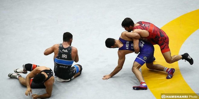 همچنین رحمان عموزاد هم وقتی قصد ترک محل تمرین را داشت مورد استقبال کشتی گیران سایر کشورها قرار گرفت و با نفر اول جهان عکس یادگاری گرفتند.