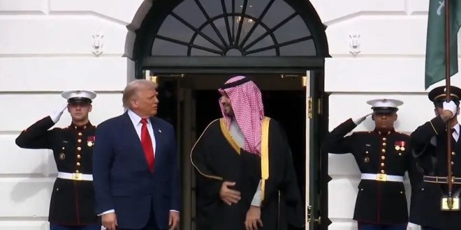 محمد بن سلمان ولیعهد عربستان سعودی روز سه شنبه به وقت محلی برای دیدار با دونالد ترامپ رئیس جمهوری آمریکا وارد کاخ سفید شد و مورد استقبال ویژه ای قرار گرفت. منبع: خبرگزاری دانشجو