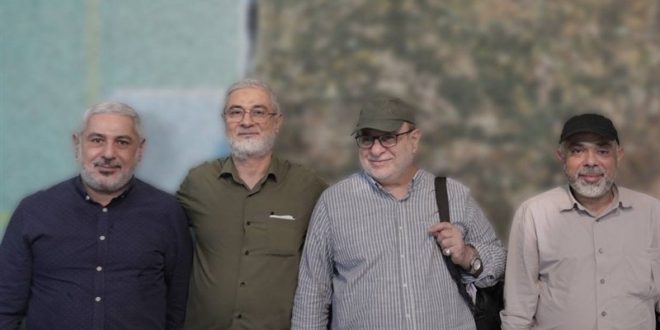تصویر پیش رو شهید هیثم طباطبایی را در کنار شهیدان حاج علی کرکی، ابراهیم عقیل و حسین هزیمه نشان میدهد. همه این شهدا توسط اسرائیل به شهادت رسیدند.