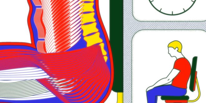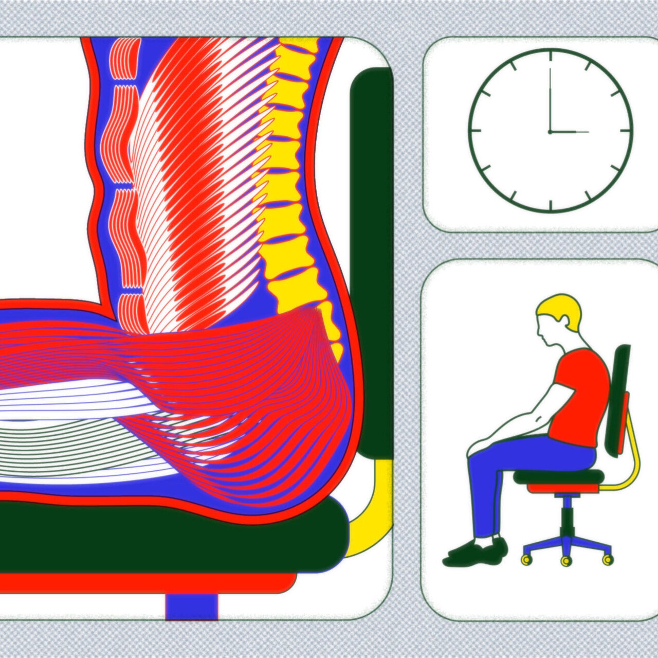 در حالت نشسته روی صندلی یک گروه از عضلات که شما را صاف نگه میدارند، بیش از حد کار میکنند۷ در حالی که گروه دیگری از عضلات اصلاً کار نمیکنند.