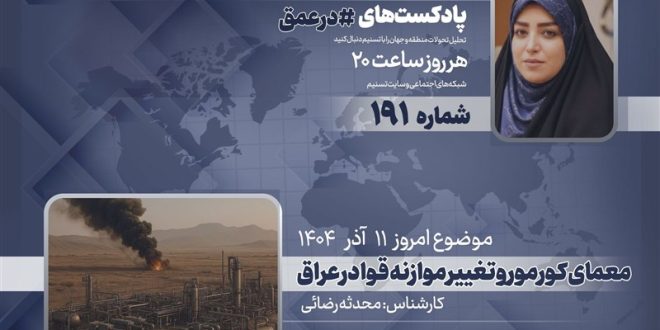 گروه بین‌الملل خبرگزاری تسنیم ـ یکصدونودویکمین شماره از پادکست «در عمق» که به بررسی مهم‌ترین روندها، تحولات و همچنین شخصیت‌ها در غرب آسیا می‌پردازد، روز ‌سه‌شنبه 11 آذر 1404 ضبط و منتشر شد. در این پادکست «محدثه رضایی»، کارشناس مسائل عراق، حمله پهپادی به میدان گازی کورمور سلیمانیه عراق و تاثیرات آن بر دعوای کردی در این کشور را بررسی می‌کند.