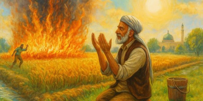 باورکردنی نبود: باد تغییر جهت داد، آتش به مزرعه حاجرضا نرسید. بعدها، پیرمردی از اهالی گفت: «این مرد، دلش را با نماز اول وقت بیمه کرده. خدا مزرعهاش را هم بیمه کرد.»