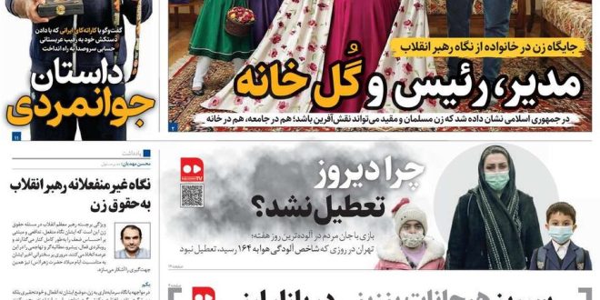 بیانات مهم رهبرمعظم انقلاب در جمع بانوان، تداوم آلودگی هوا ف تلاش امریکا برای پایان دادن به حیات سیاسی مادورو در ونزوئلا و…از تیترهای مطبوعات امروز است.
