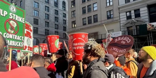 به گزارش خبرگزاری تسنیم، شبکه خبری الجزیره در گزارشی نوشت: جمعیتی چندصد نفره و پرشور، خیابان بسیار پرتردد پنجم در شهر نیویورک را پر کردند و با در دست داشتن پلاکاردهای اعتراضی از کافیشاپ زنجیرهای استارباکس خواستند برای عقد قرارداد با اتحادیه کارگری وارد مذاکره شود.
