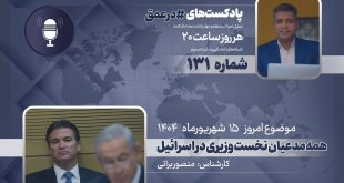 گروه بینالملل خبرگزاری تسنیم ـ یکصد و سی امین شماره از پادکست «در عمق» که به بررسی مهمترین روندها، تحولات و همچنین شخصیتها در غرب آسیا میپردازد، روز شنبه 15 شهریور 1404 ضبط و منتشر شد. در این شماره «منصور براتی»، کارشناس مسائل رژیم صهیونیستی وضعیت مدعیان نخستوزیری رژیم صهیونیستی را بررسی …