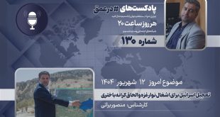 گروه بینالملل خبرگزاری تسنیم ـ یکصد و سی امین شماره از پادکست «در عمق» که به بررسی مهمترین روندها، تحولات و همچنین شخصیتها در غرب آسیا میپردازد، روز چهارشنبه 12 شهریور 1404 ضبط و منتشر شد. در این شماره «منصور براتی»، کارشناس مسائل رژیم اسرائیل علت عجله رژیم صهیونیستی برای …