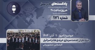 گروه بینالملل خبرگزاری تسنیم ـ یکصدوهفتادویکمین شماره از پادکست «در عمق» که به بررسی مهمترین روندها، تحولات و همچنین شخصیتها در غرب آسیا میپردازد، روز یکشنبه 11 آبان 1404 ضبط و منتشر شد. در این اپیزود «منصور براتی» بحران خدمت اجباری جوانان حریدی در ارتش اسرائیل و اوجگیری مجدد موج اعتراضات در سرزمینهای اشغالی …